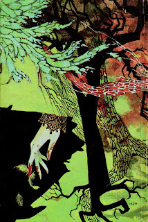 "More Tales to Tremble By" from 1968 was Whitman Publishing's second collection of great haunting and suspenseful horror stories (see also "Tales to Tremble By" 1966.) And though the first collection contains a well chosen assortment of classic terrors by the luminary likes of Bierce, Dickens, Irving, Stoker etc., it's actually the second collection that really screams out from beyond the grave with demonic delights by some of my own personal favorites-- Saki, Asquith, Hodgson, Derleth, and the supreme master of all horror, M. R. James! Great writing aside, this collection also rises well above the first with the much more evocative, beautifully eerie, horrifyingly hypnotic illustrations of Gordon Laite. Here now is a small sampling of highlights from this fantastically frightening book, (edited by Stephen P. Sutton.)