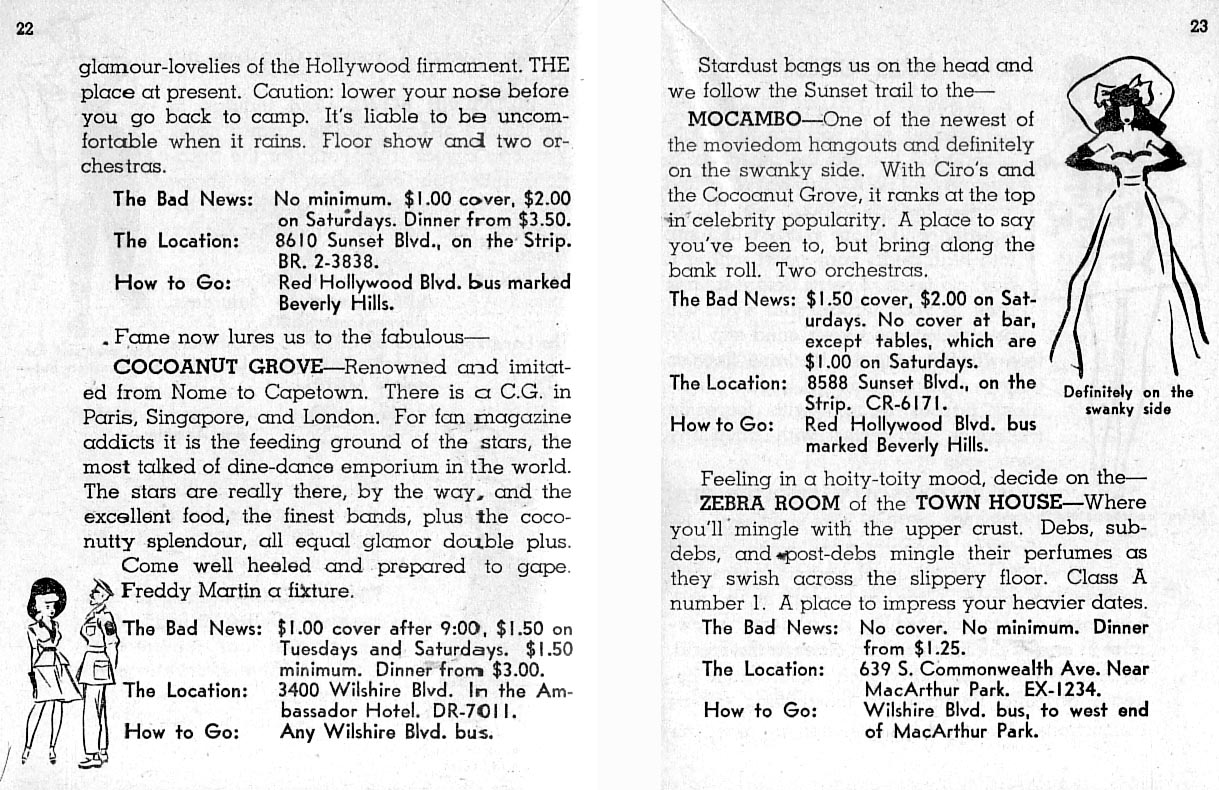 "Sin City" Vegas in our last post was fun, but now it's time to head to the westcoast and partake in some serious sin. It's the 1940's, and what's a military boy to do in a city as big and diverse as Los Angeles? Well, look no further, this handy, pocket-size booklet has the sinside dope on what to do, where to do it, and most importantly-- where the girls are! Loaded with spicy enticing illustrations and info, more than anything, this is actually a wonderful snapshot of men's entertainment in 1940's wartime era LA.
