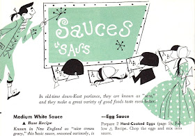 The second half of grand imagery / illustration highlights by Lou Peters from The New England Cook Book, 1956 --for more info about this book check our previous post HERE. And as you can see, things get even more fun as the food literally comes to life, and with adorably happy people of all ages from a variety of eras and lifestyles, graciously gobbling it up like there's no tomorrow!